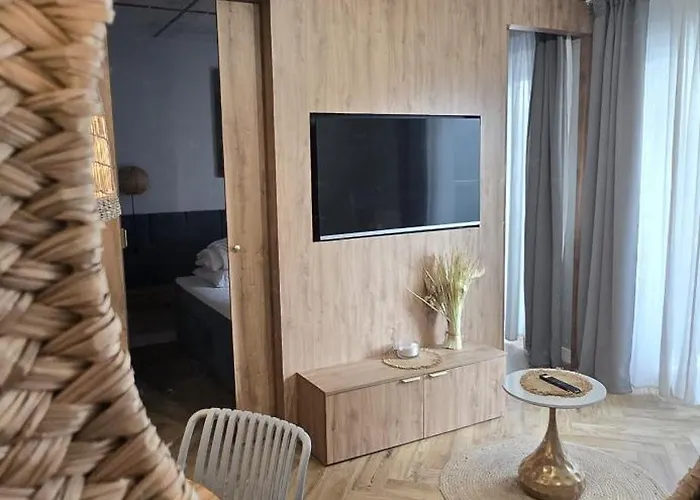 Die Unterkunft verfügt über eine Küchenzeile für Selbstversorger und bietet seinen Gästen einen Essbereich im Freien, um ihre Mahlzeiten zu genießen. Die nächstgelegene Bushaltestelle Podczele - Tarnopolska ist ein paar Schritte entfernt von der Unterkunft. Ein Jacuzzi, ein Whirlpool und ein Hallenbad in diesen Apartments garantieren einen angenehmen Aufenthalt.